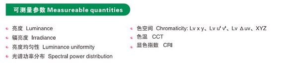 1) Rich measurement functions: brightness, brightness uniformity, spectral power distribution, chromaticity coordinates, color temperature, color rendering index and other parameters