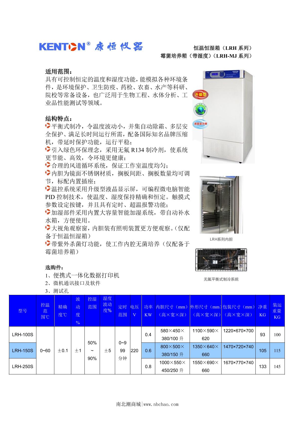 Kenton LRH-100S Constant temperature and Humidity Chamber brochure
