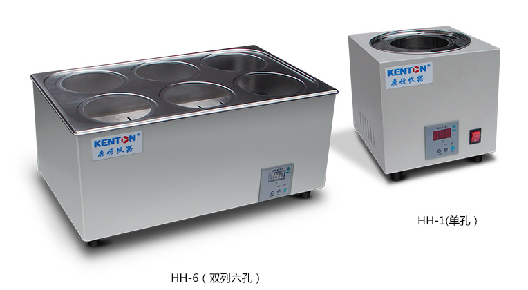 KENTON KentonHH-4 Digital Display Water bath designed a 110 × 300 × 310mm size studio, made of stainless steel, is a double row four hole Water bath, HH-4 has +/- 1 ℃ temperature control accuracy. "