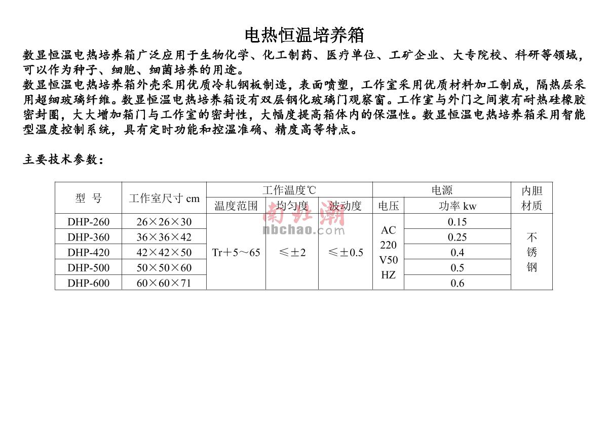 - 2HuiTai DHP-9052N Electric Thermostatic Incubator brochure