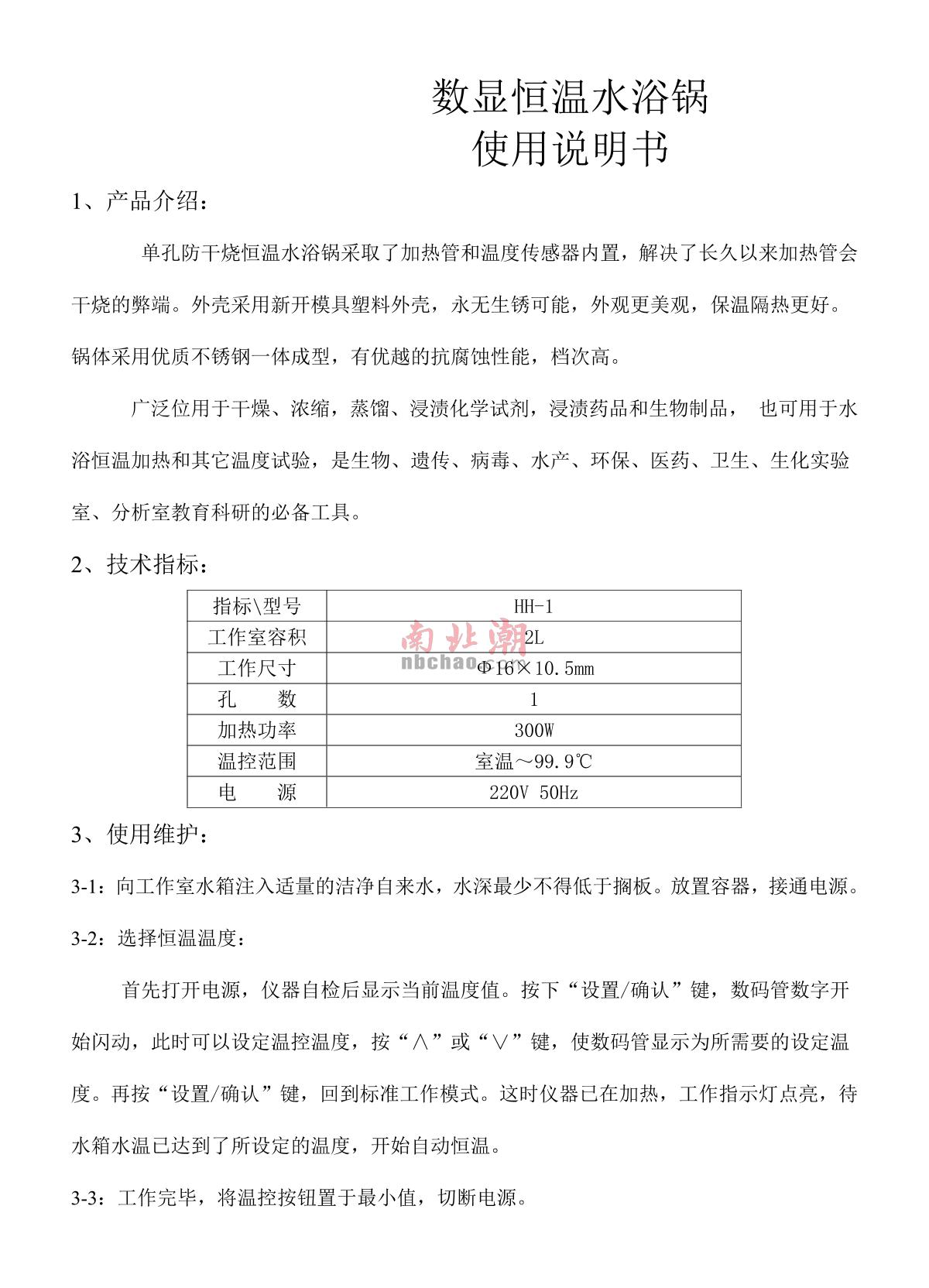 - 1TaiSiTe DK-98-Ⅱ A (single row double hole) Electric thermostatic Water Bath Manual