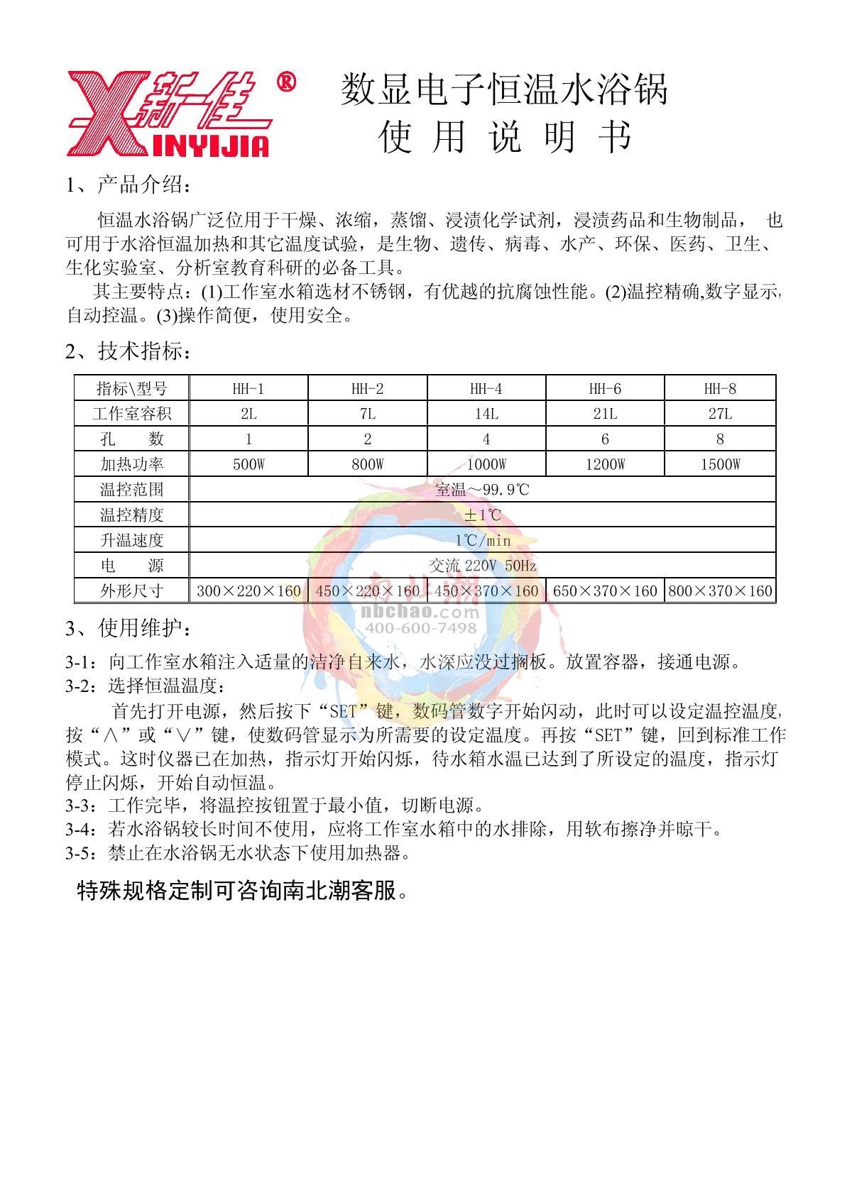 Honghua HH-4 high-grade anti-dry burning, digital display constant temperature Water Bath 4 holesFour holes330*330*140304 stainless steel¥770.0SE -