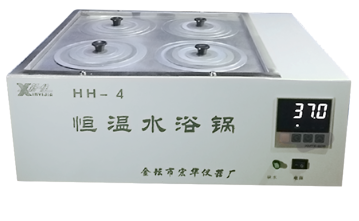 Honghua HH-4 digital display constant temperature Water Bath Temperature range RT +~ 99.9 ℃, working tank volume 14L, number of holes four holes, Power 220V 50Hz, external size 450 * 370 * 160mm, heating power 1000W, temperature control accuracy ± 1 ℃, heating rate 1 ℃/min.