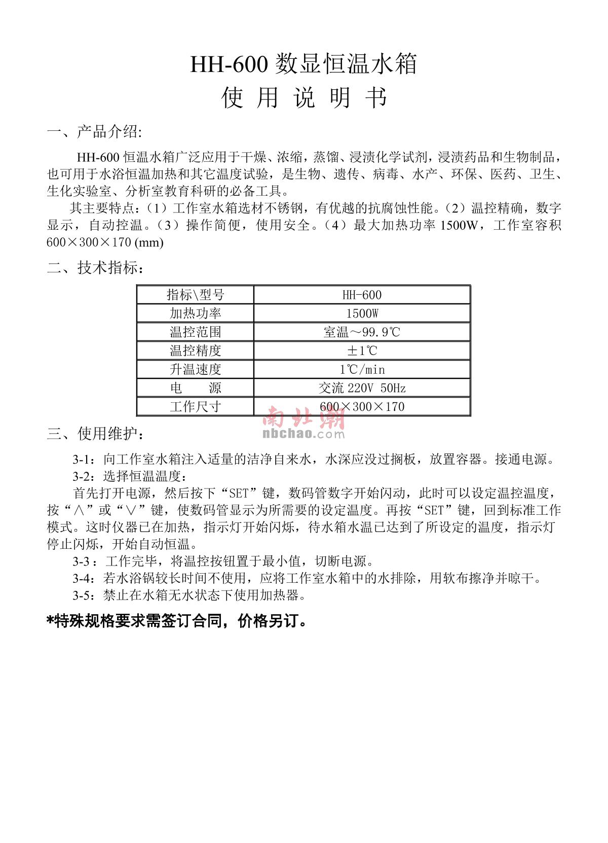 HongHua HH-600 Digital display Thermostatic Water Bath Manual,OI