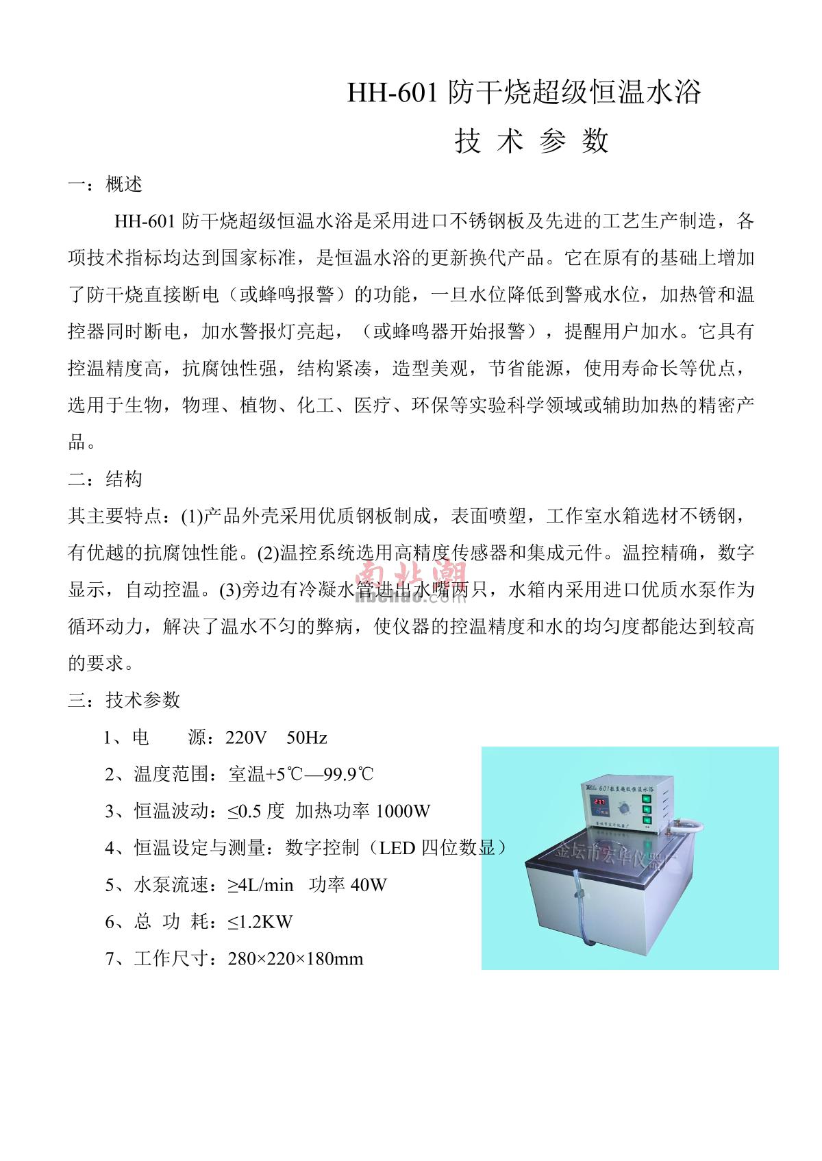 HongHua HH-601 Anti-dry burning super constant temperature Water Bath brochure