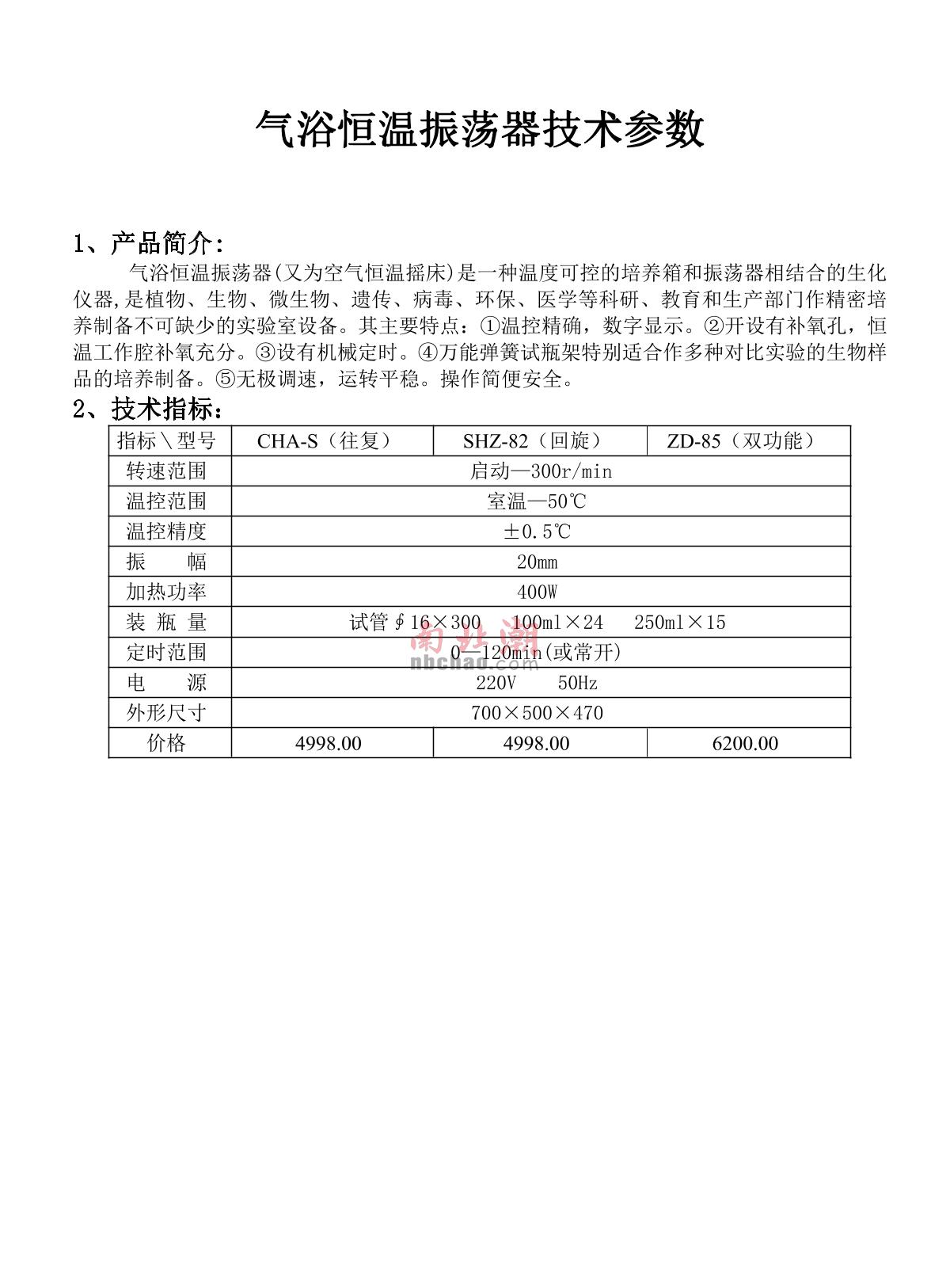 HongHua SHZ-82 Digital Gas Bath Oscillator brochure
