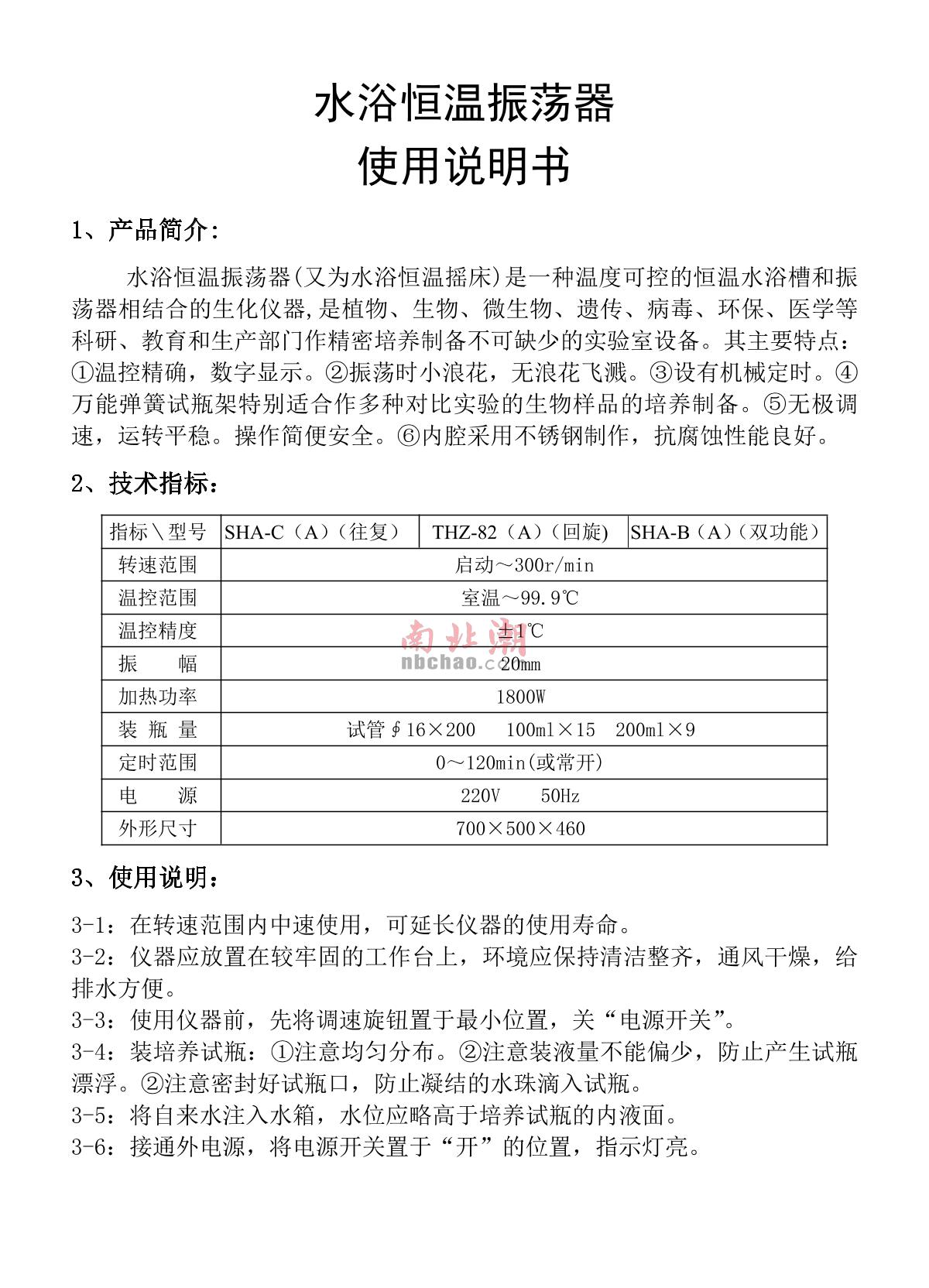 HongHua SHA-B Digital Water Bath Oscillator Manual,OI
