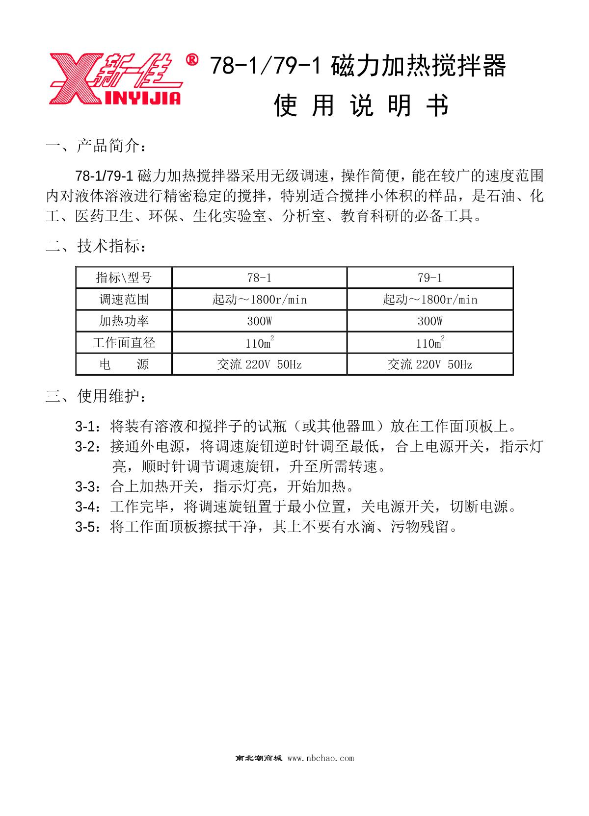 HongHua 79-1 Magnetic Heating Stir Manual,OI