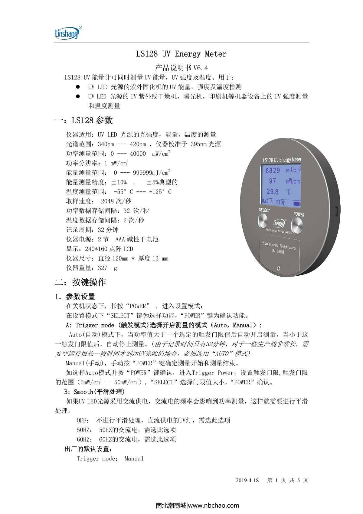 LinShang LS128 UV energy meter Manual,OI