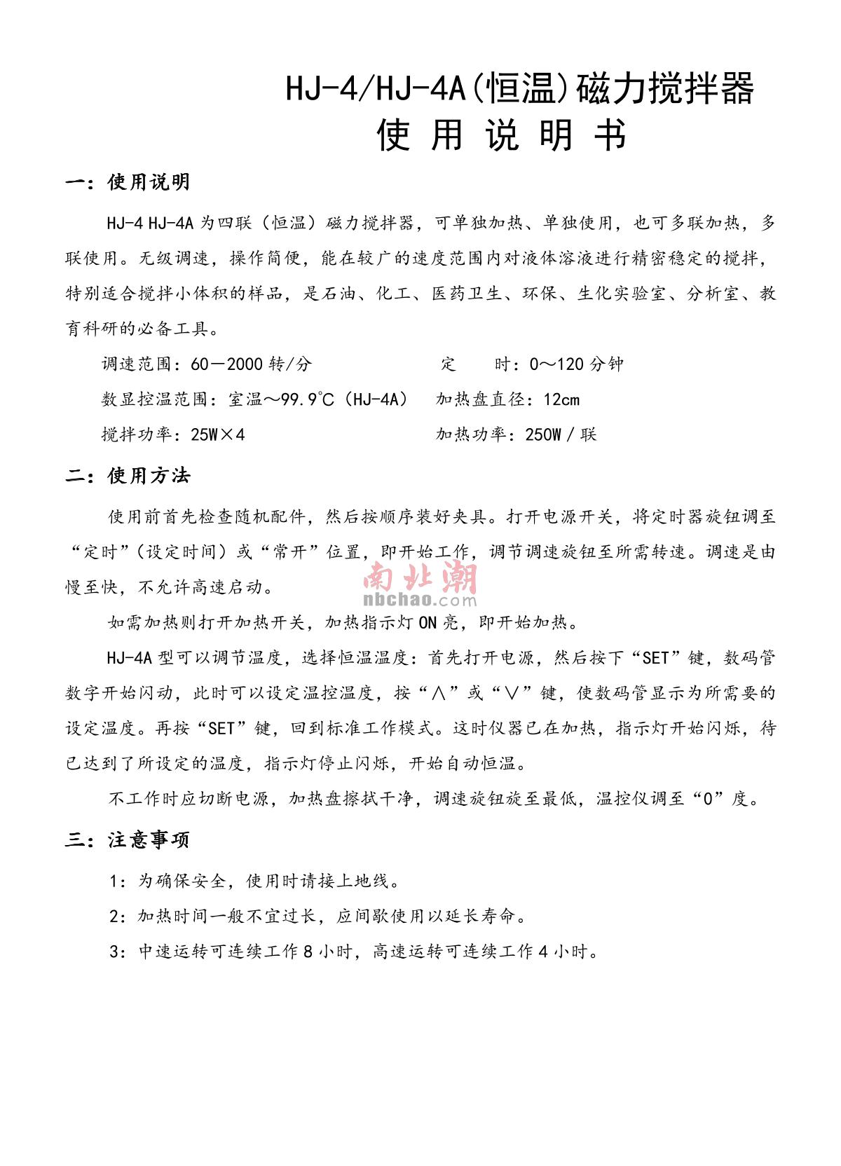 HongHua HJ-4A Quadruple constant temperature magneticstirrer (synchronous) Manual,OI