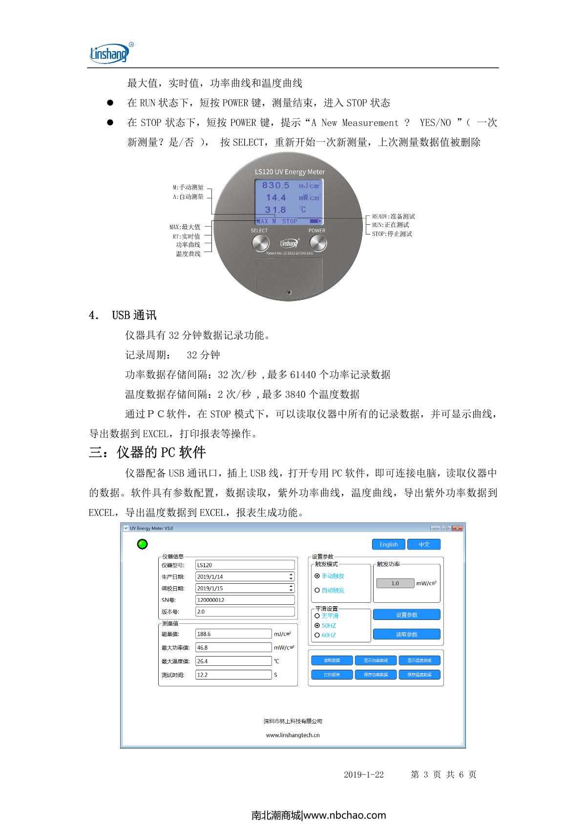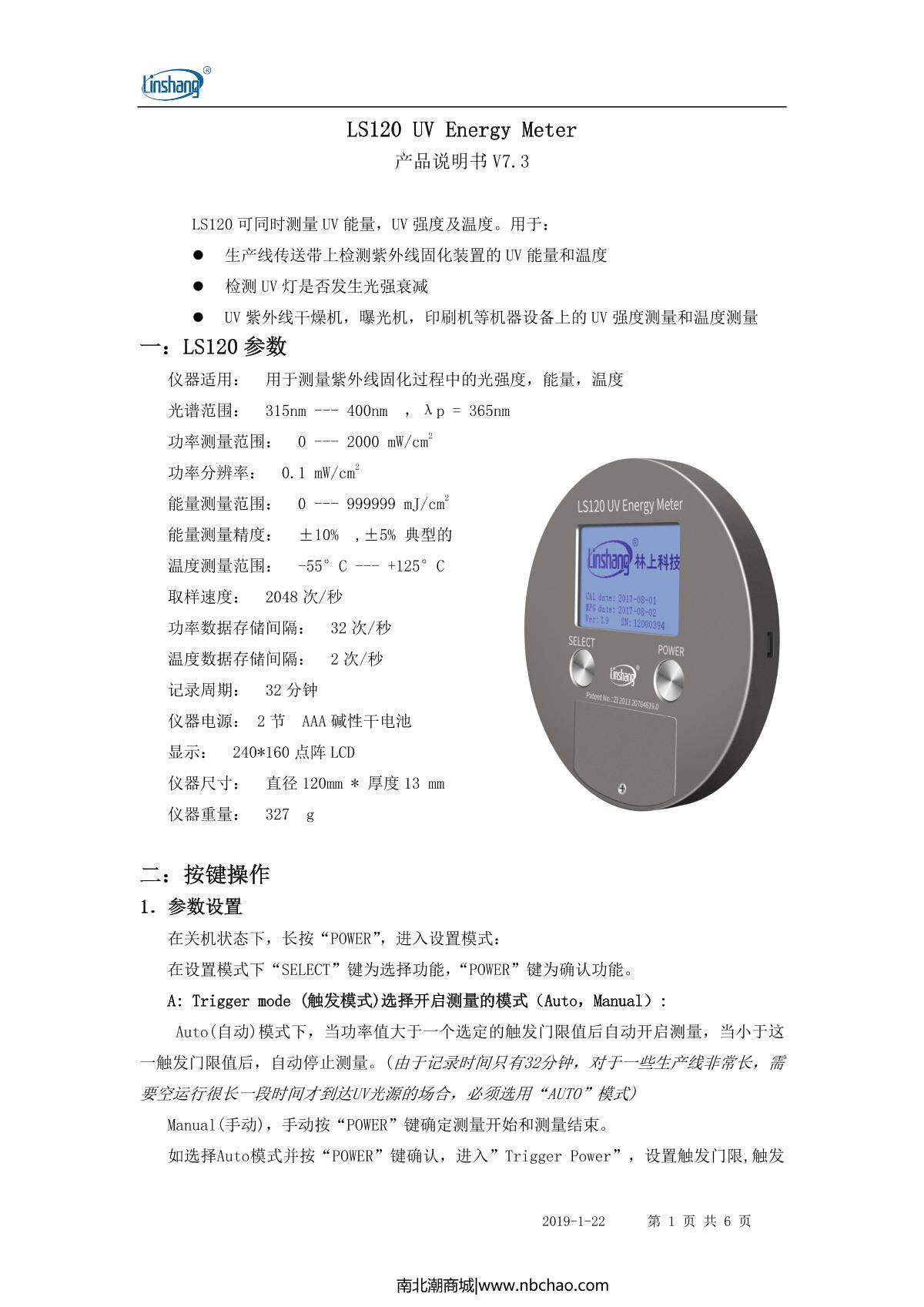 Linshang LS128 UV energy meter professional editionUV LED light source light intensity, energy, temperature measurement340Nm~ 420nm, instrument calibrated to 395nm light source0~20000mW/cm²¥3320.0SE