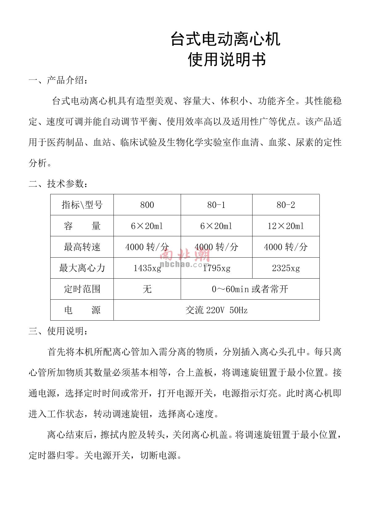 HongHua 80-2 Desktop Electric Centrifuge Manual,OI