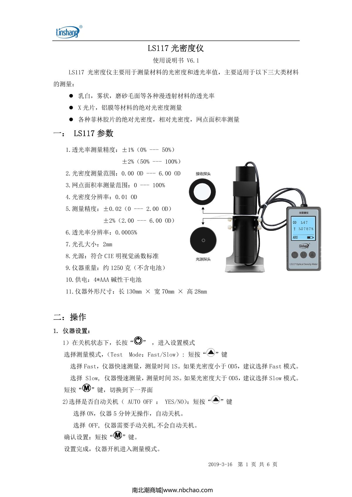 - 1LinShang LS183 Optical inspection transmittance Measurement Instrument Manual