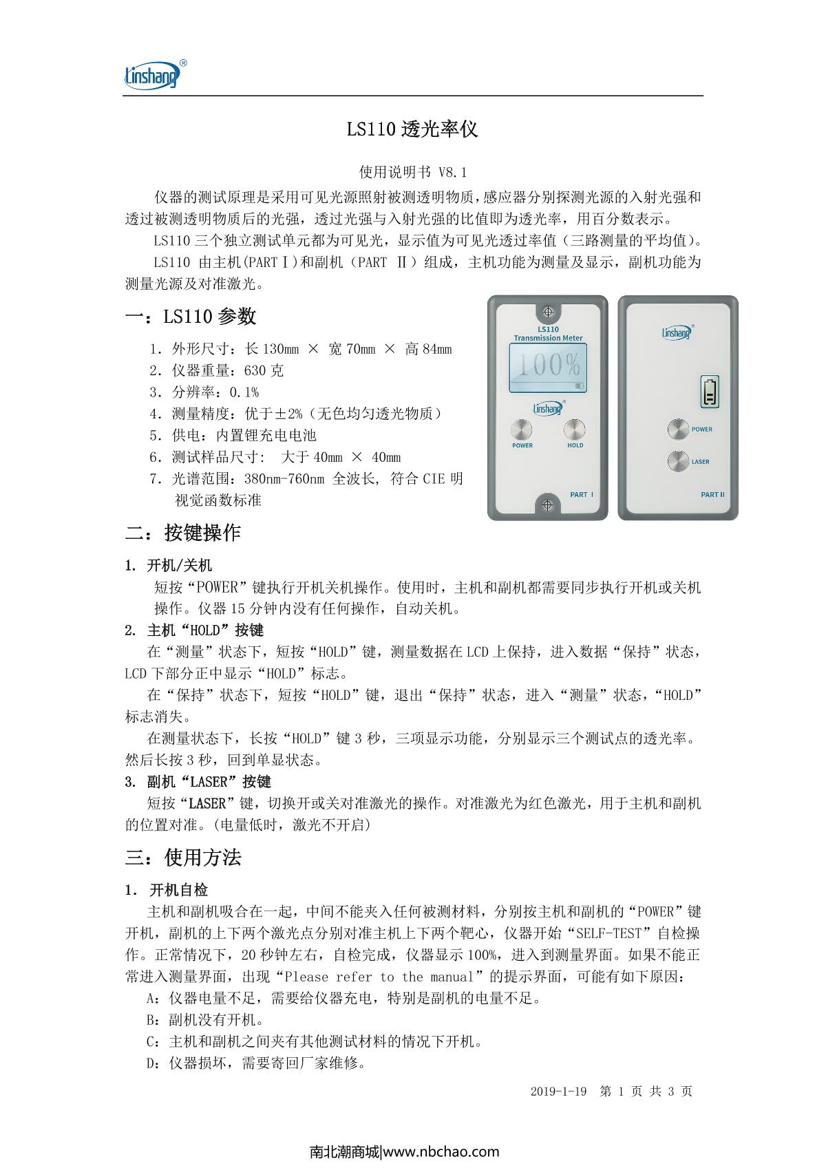 - 8LinShang LS108D Lens transmittance Measurement Instrument Manual