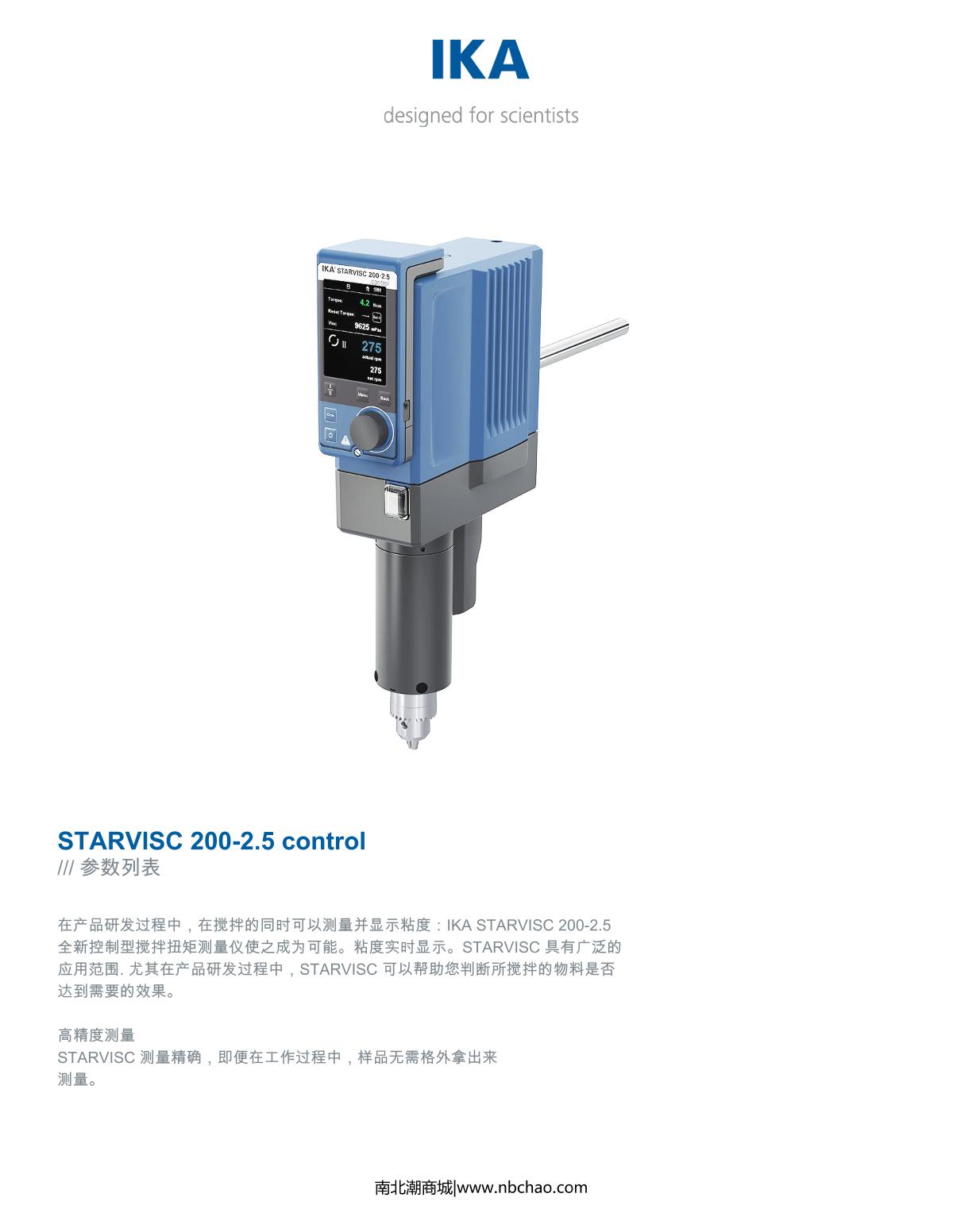 IKA STARVISC 200-2.5 control Torque measuring instrument brochure