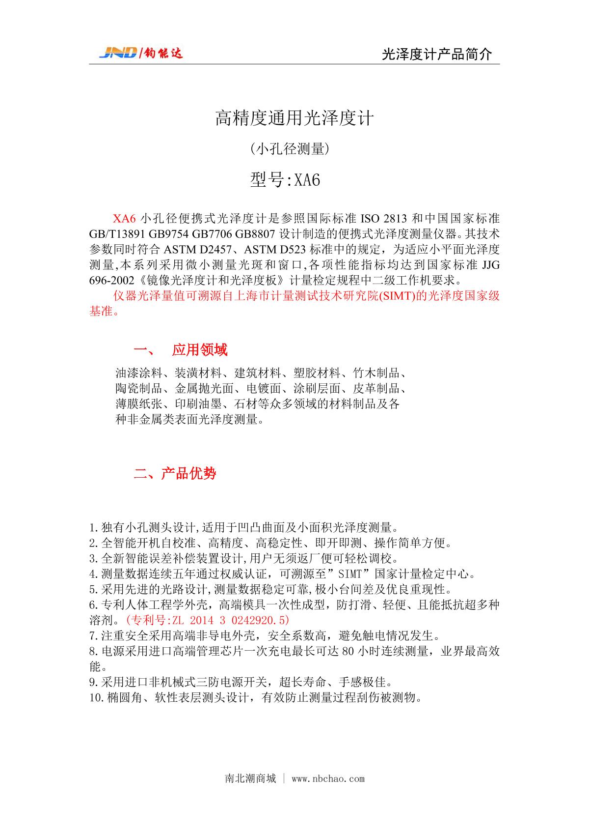 JND XP6 ultra-high precision Glossiness Meter, small aperture measurement60°0~199.9GU1.5*3mm¥2000.0SE -