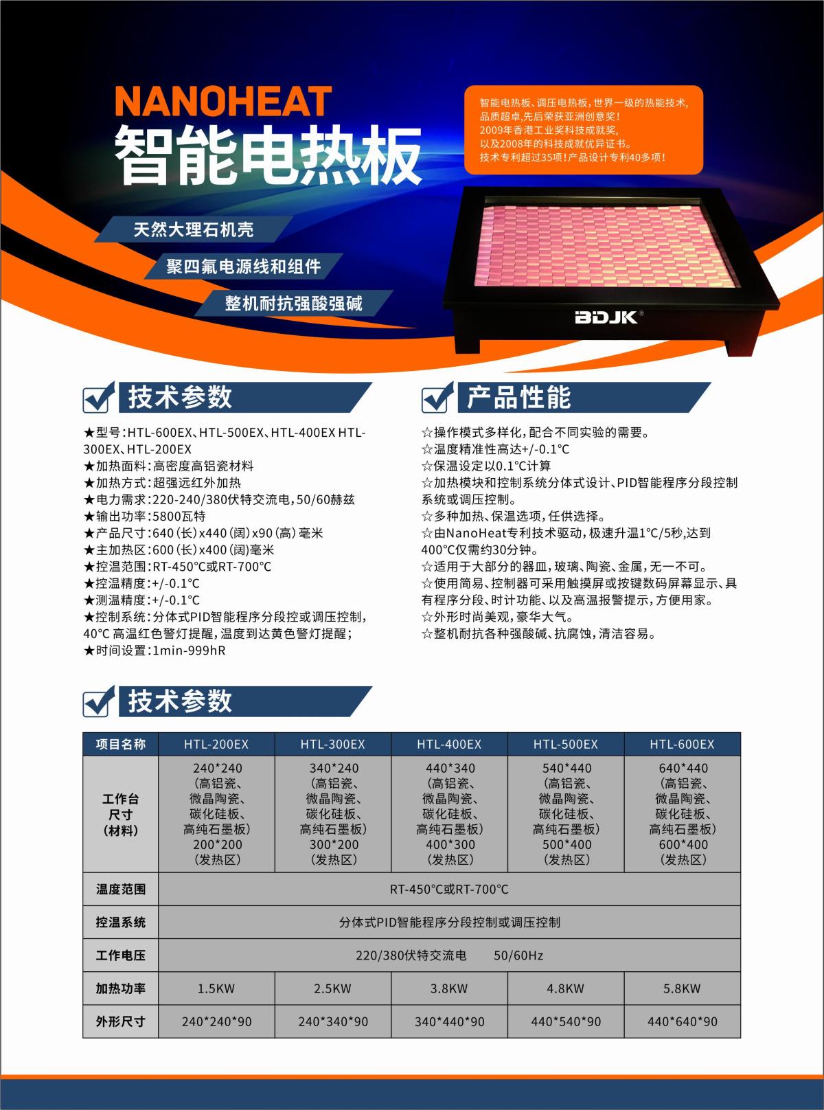 BDJK HTL-500EX laboratory nano heating board, touch screenHigh density high aluminum porcelain materialFar infrared heating220-240 volts AC, 50/60 Hz¥13600.0SE -