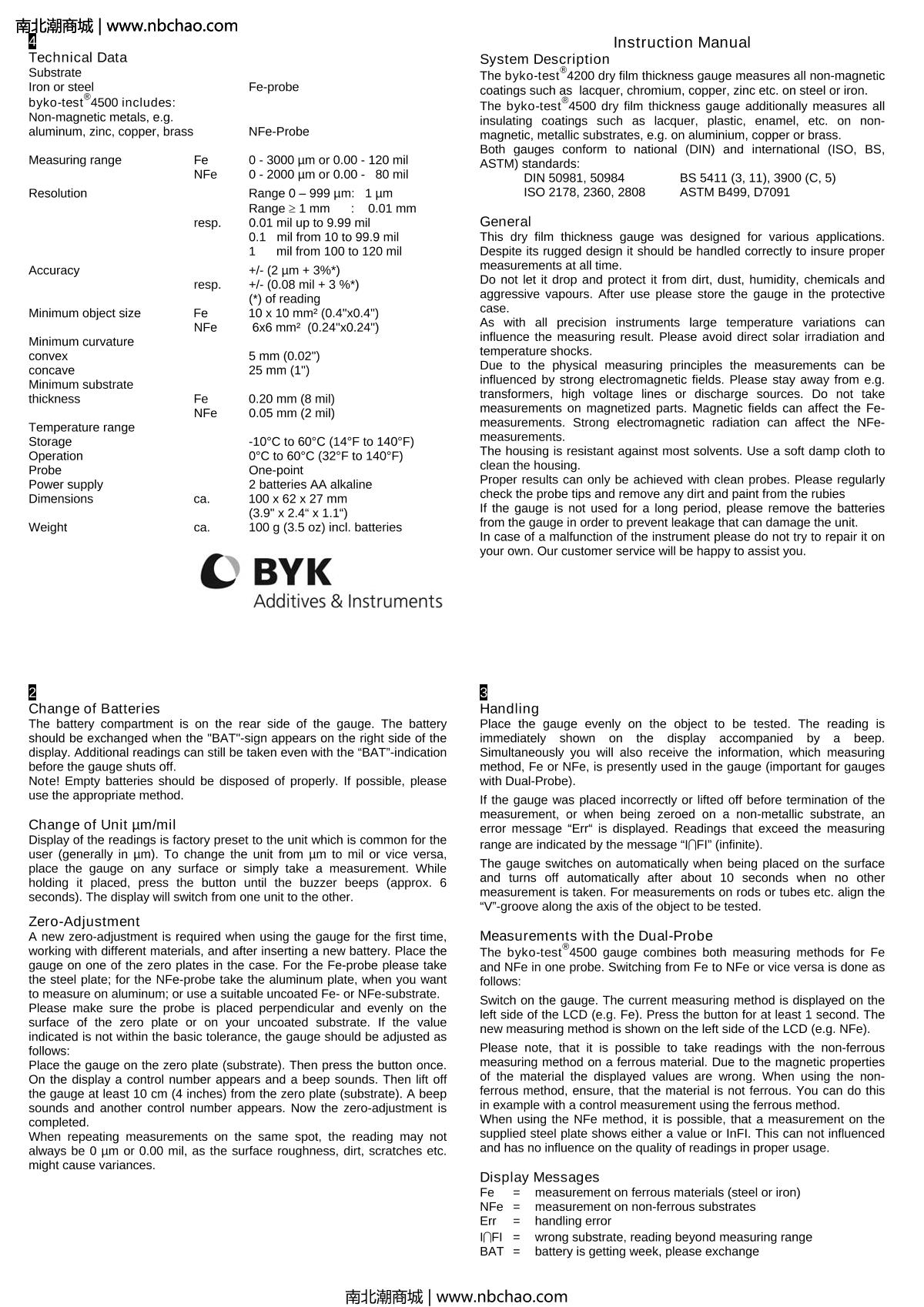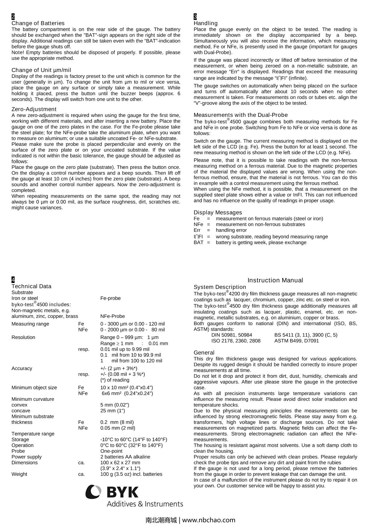 BYK 3636 BYKO-TEST 4200 magnetic (3638 probe) Thickness Gauge Manual,OI