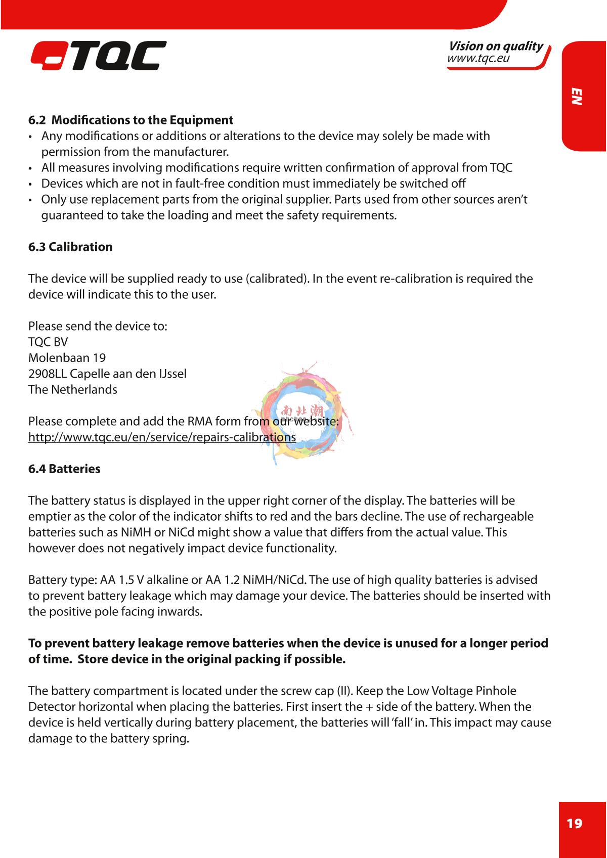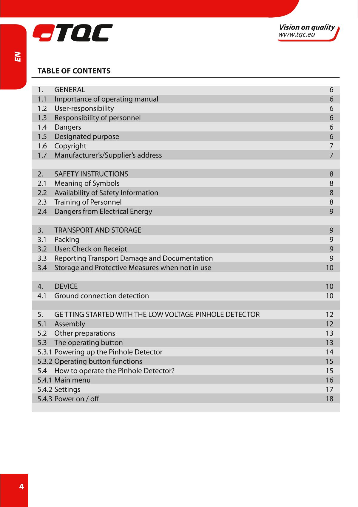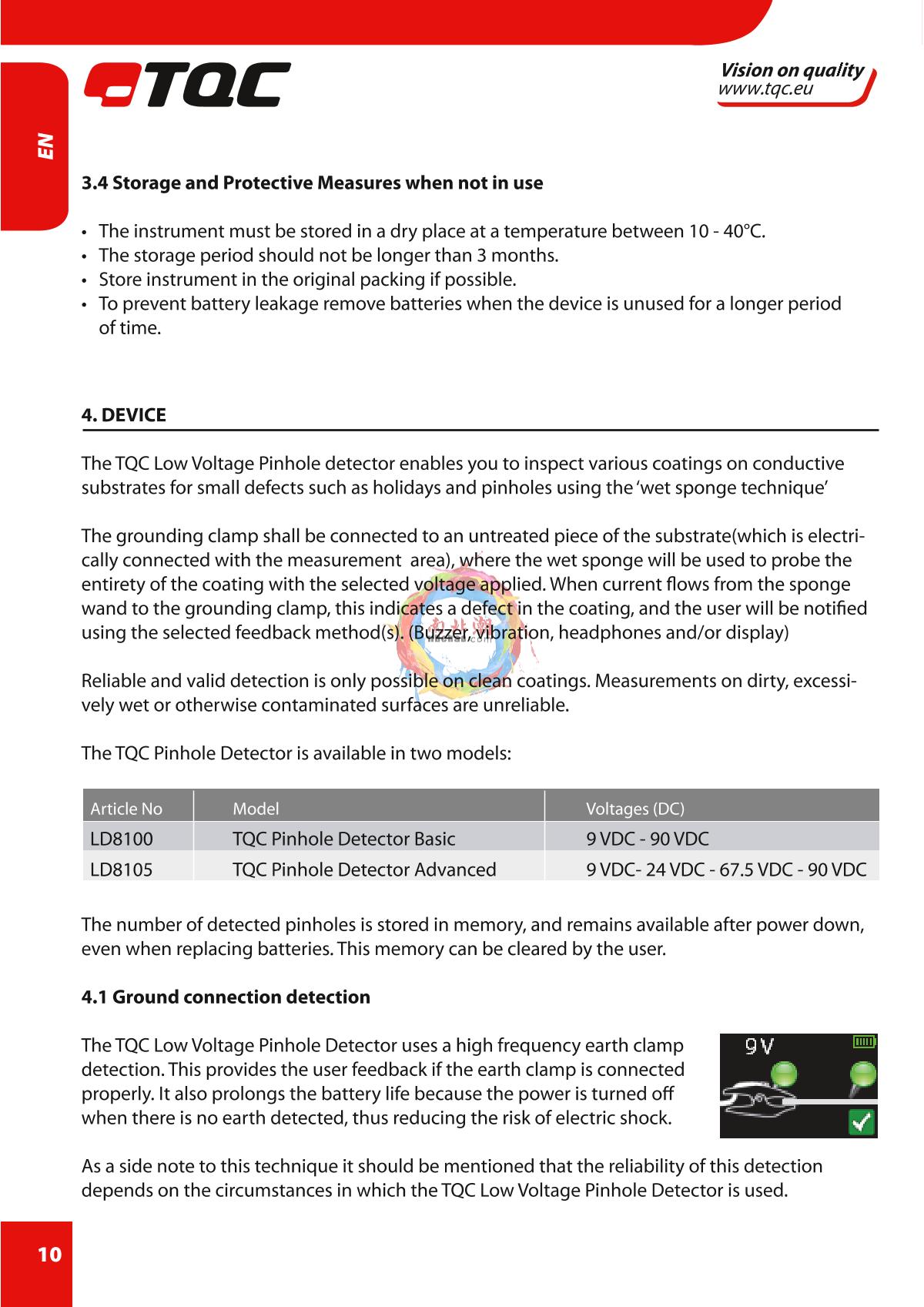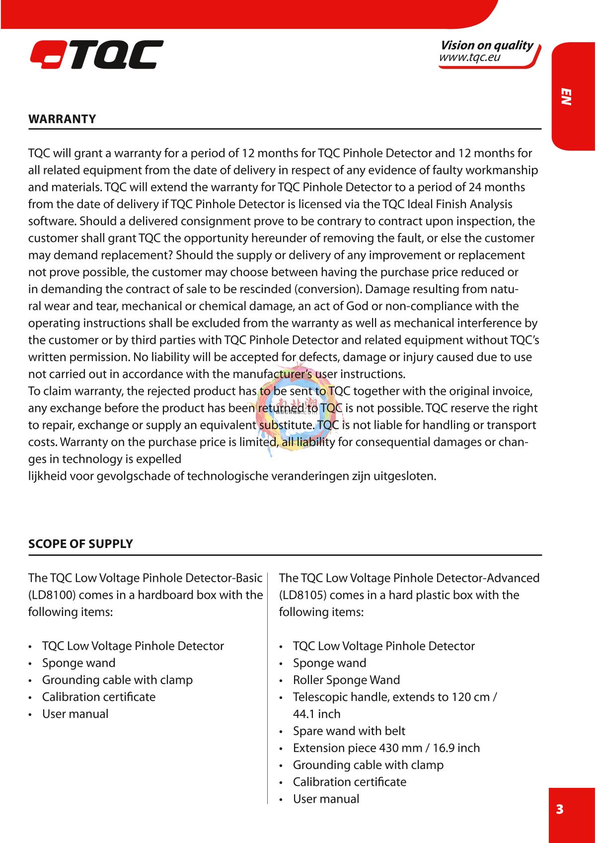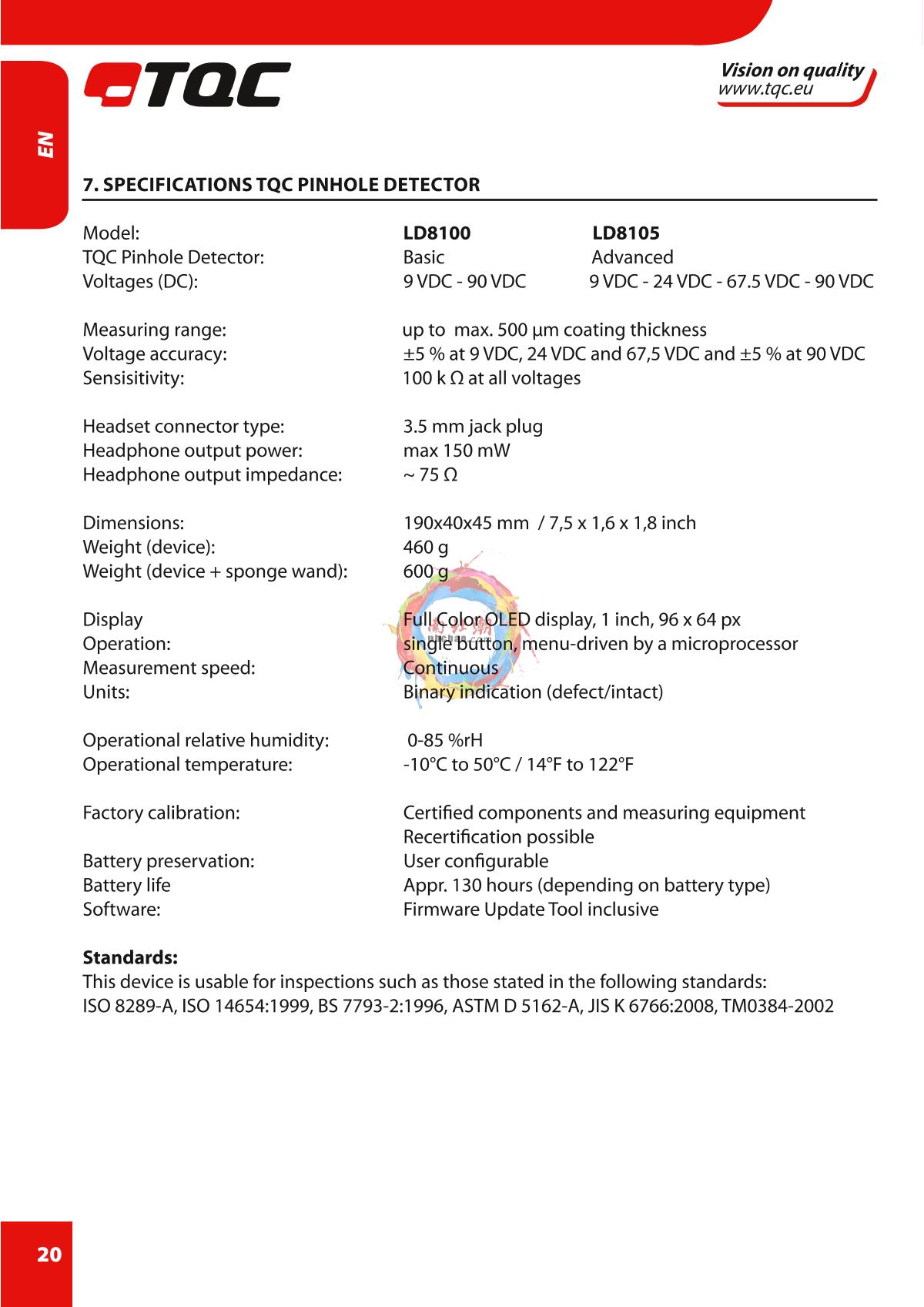TQC sheen LD8100 Pinholing Detector Manual,OI