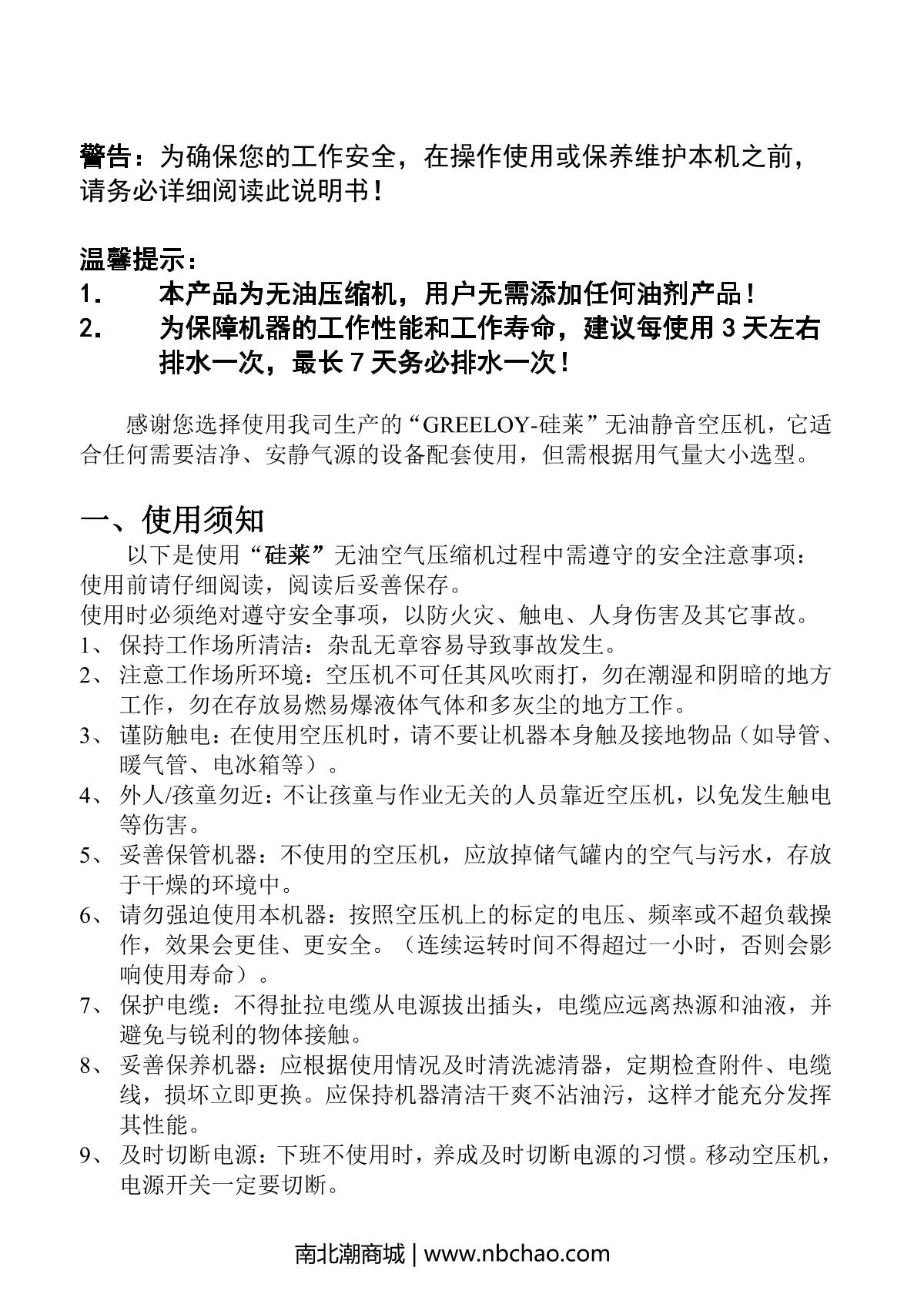 GREELOY GA-63 Oil-free Air Compressor Manual,OI