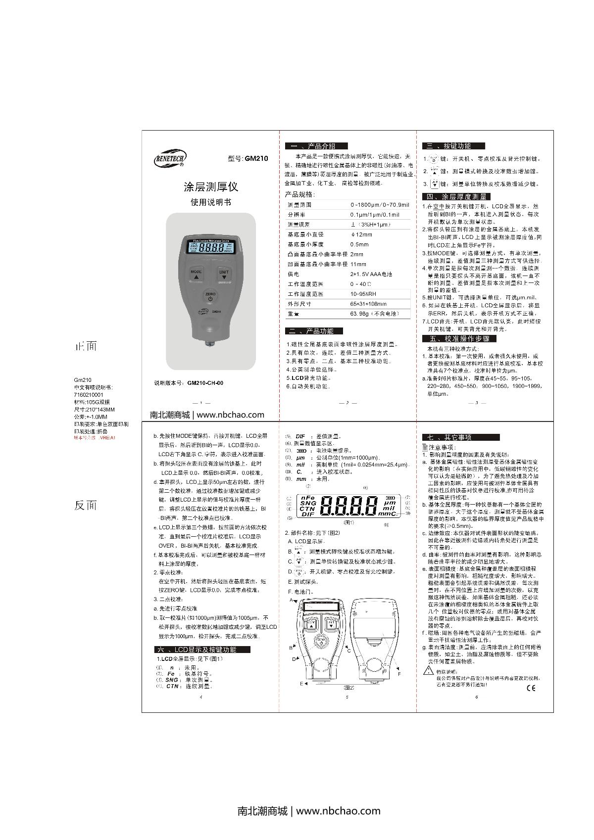 BENETECH GM210 Coating Thickness Gauge Manual,OI