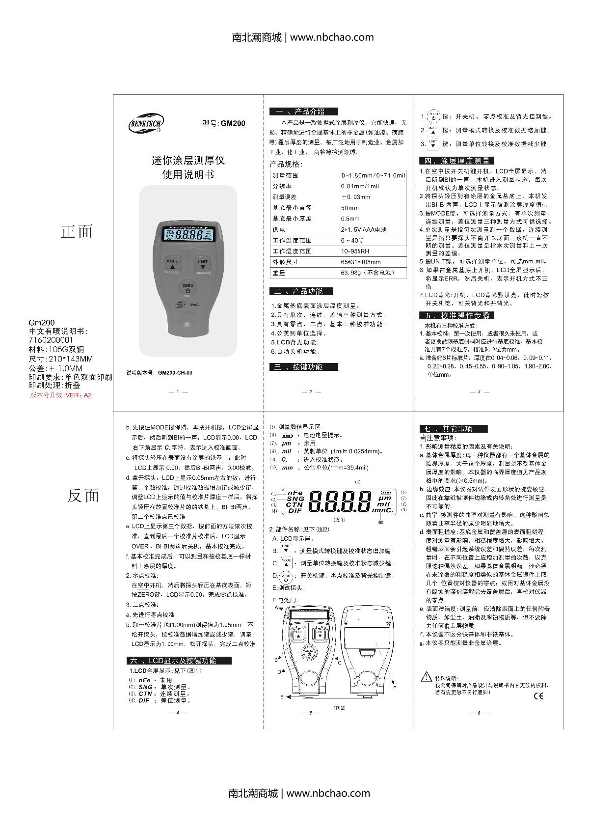 BENETECH GM200 Coating Thickness Gauge Manual,OI
