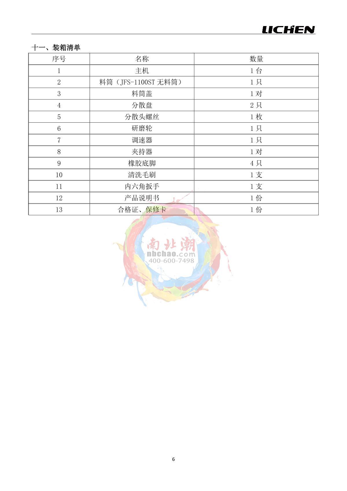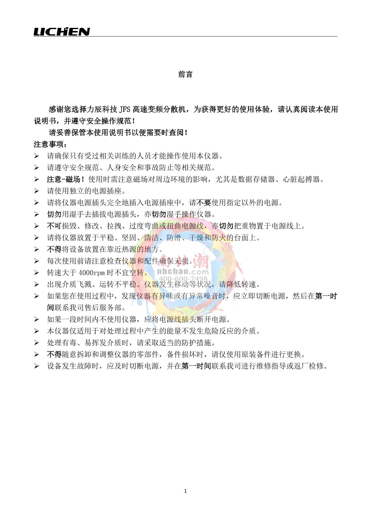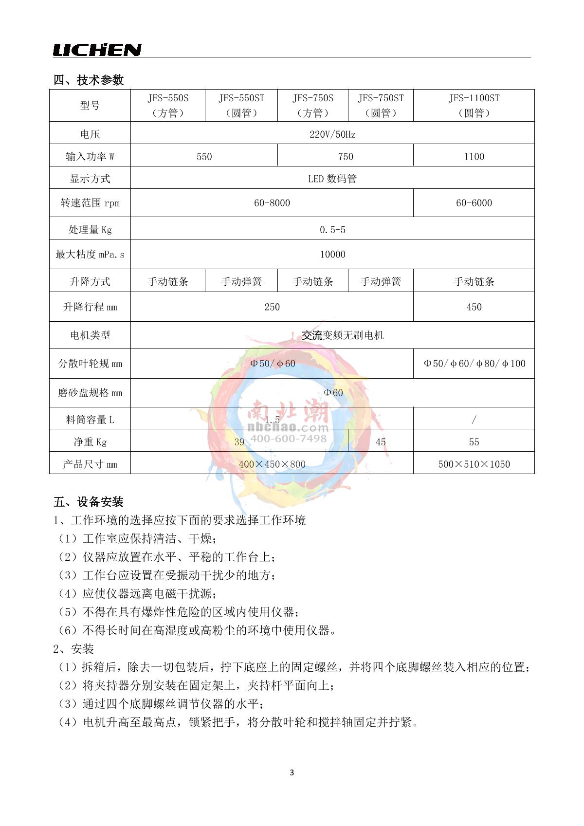 LICHEN JFS-550ST (round tube) High Speed Frequency Converter Disperser Manual,OI