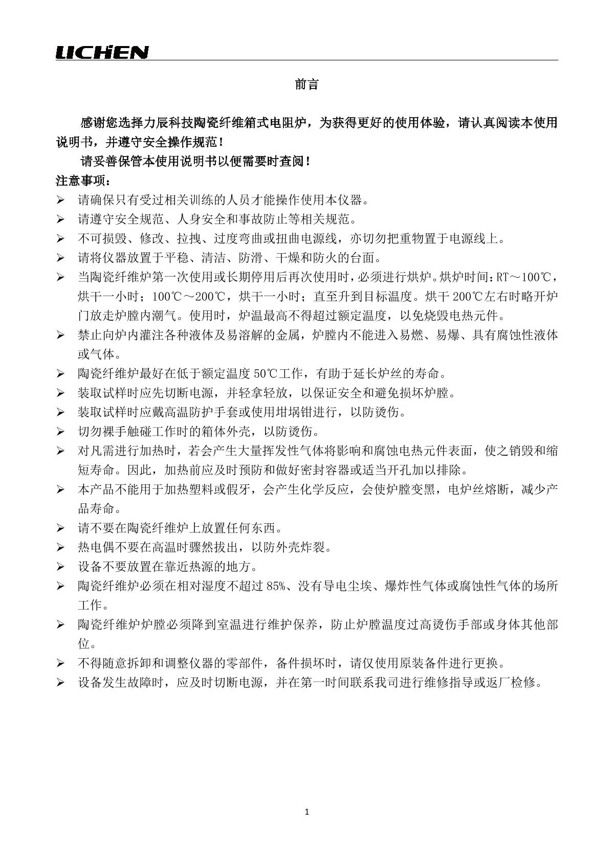 - 1LICHEN SX2-8-10LT Ceramic fiber Box Furnace Manual