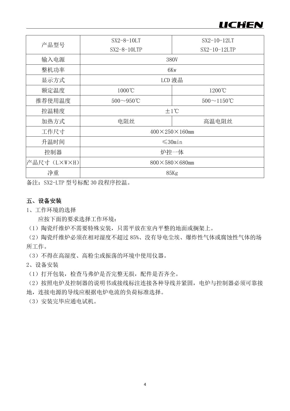 - 7LICHEN SX2-4-10LT Ceramic fiber Box Furnace Manual