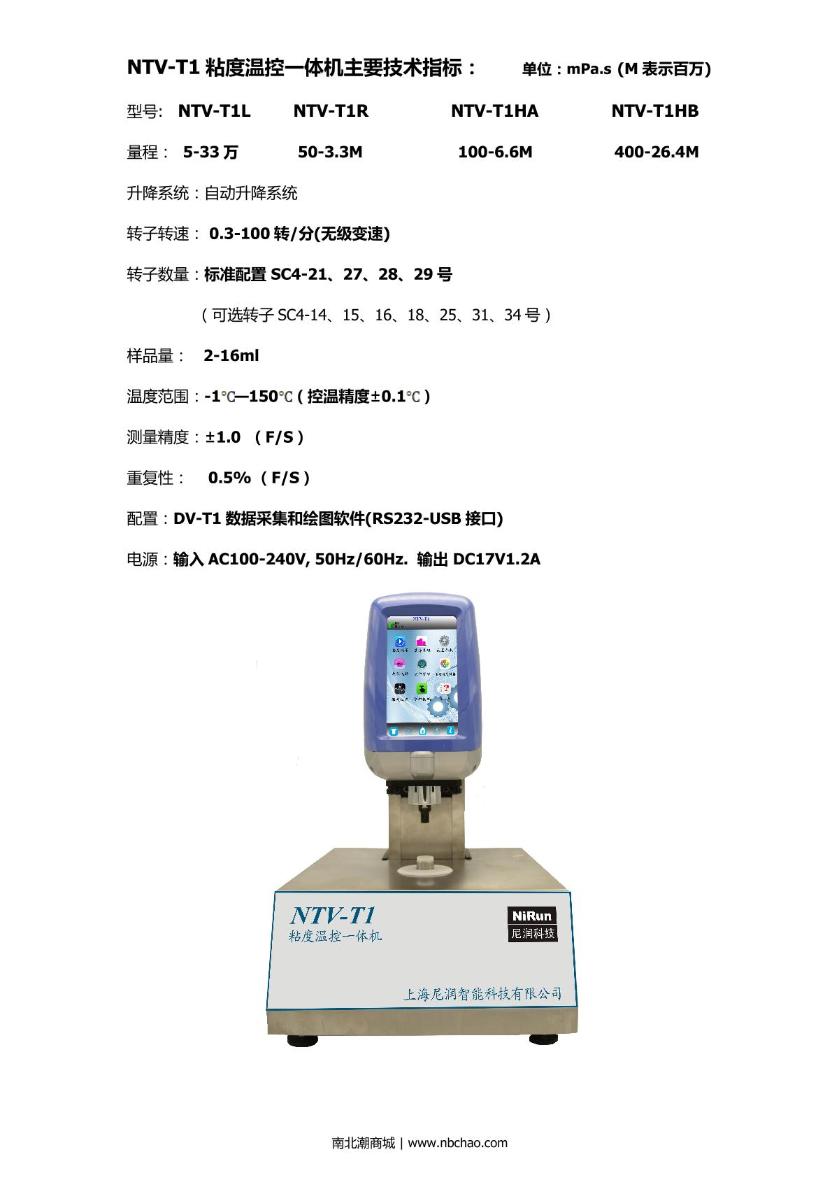 NiRun NTV-T1R Viscosity temperature control machine brochure