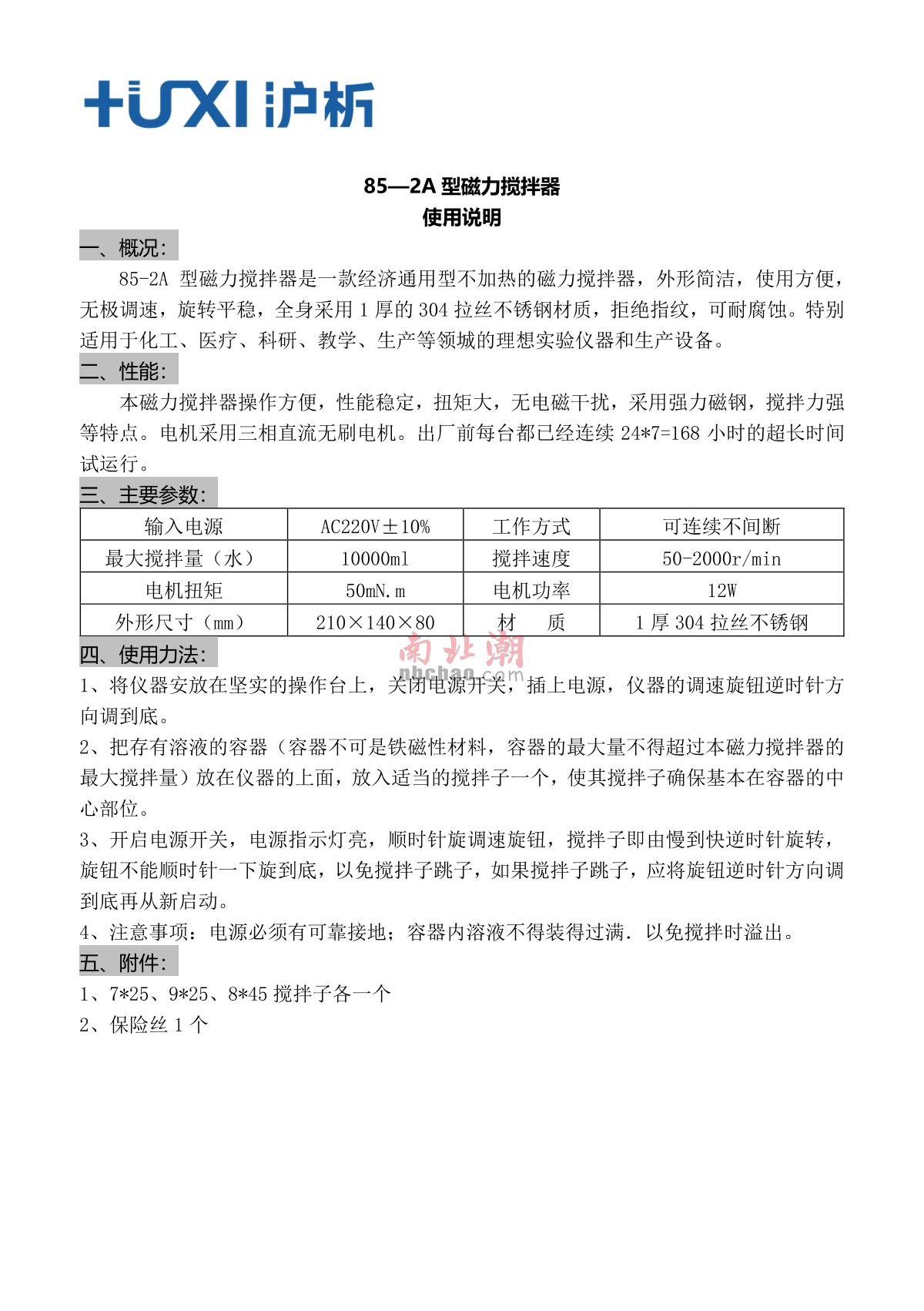 HuXi 85-2A Magnetic Stirrer Manual,OI