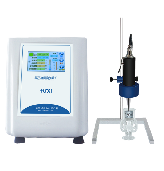 Huxi UP-250 portable ultrasonic crushing instrument 2.5-250W is continuously adjustable, the crushing capacity is 0.1-150ML (corresponding horn needs to be selected), the display method is true color capacitive touch screen display, and the control method is microcontroller + TFT touch.