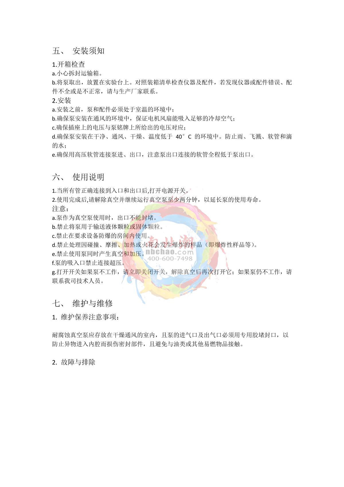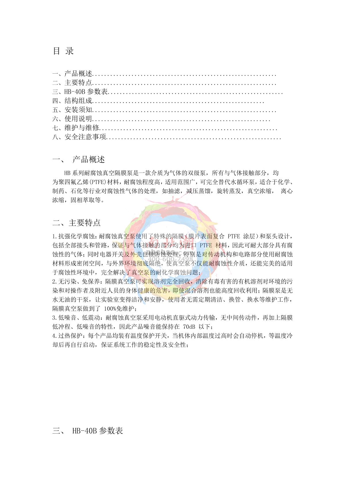 HuXi HB-40B Corrosion resistant Diaphragm Pump Manual,OI