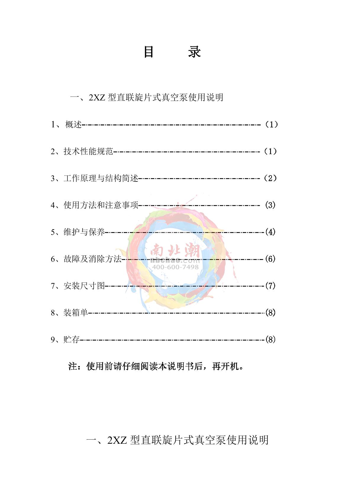 - 1HuXi 2XZ-4B Rotary vane vacuum pump Manual