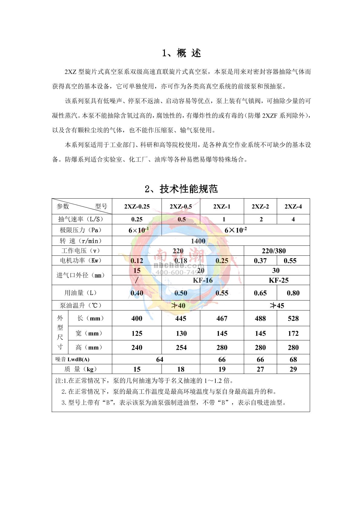 - 9HuXi 2XZ-1 Rotary vane vacuum pump Manual