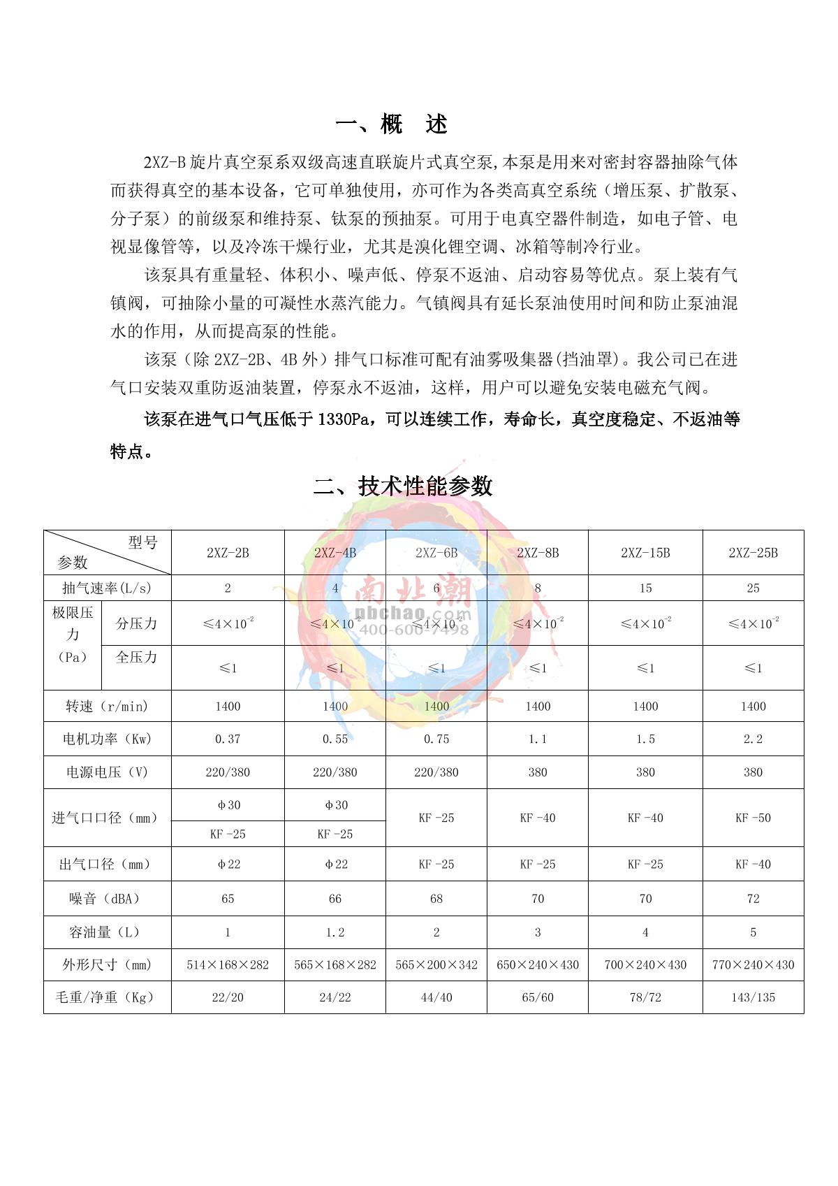 - 3HuXi 2XZ-2B Rotary vane vacuum pump brochure