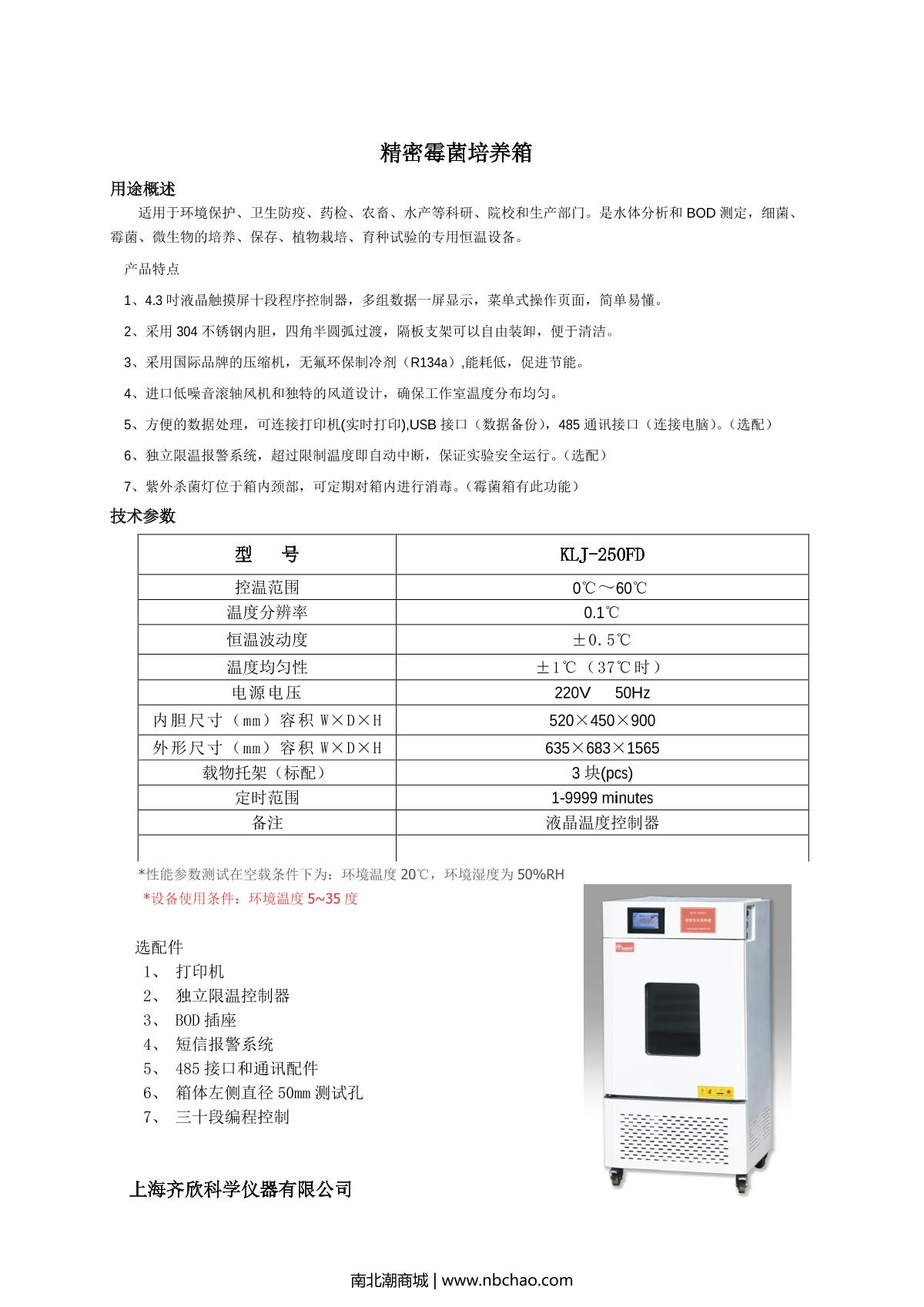 Keelrein KLH-250FD Precision Biochemical Incubator (touch screen) brochure