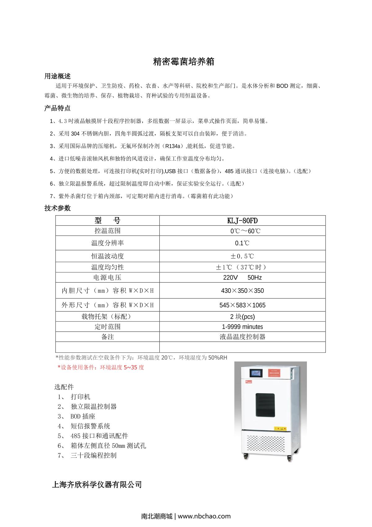 Keelrein KLJ-80FD Precision Mold Incubator (touch screen) brochure