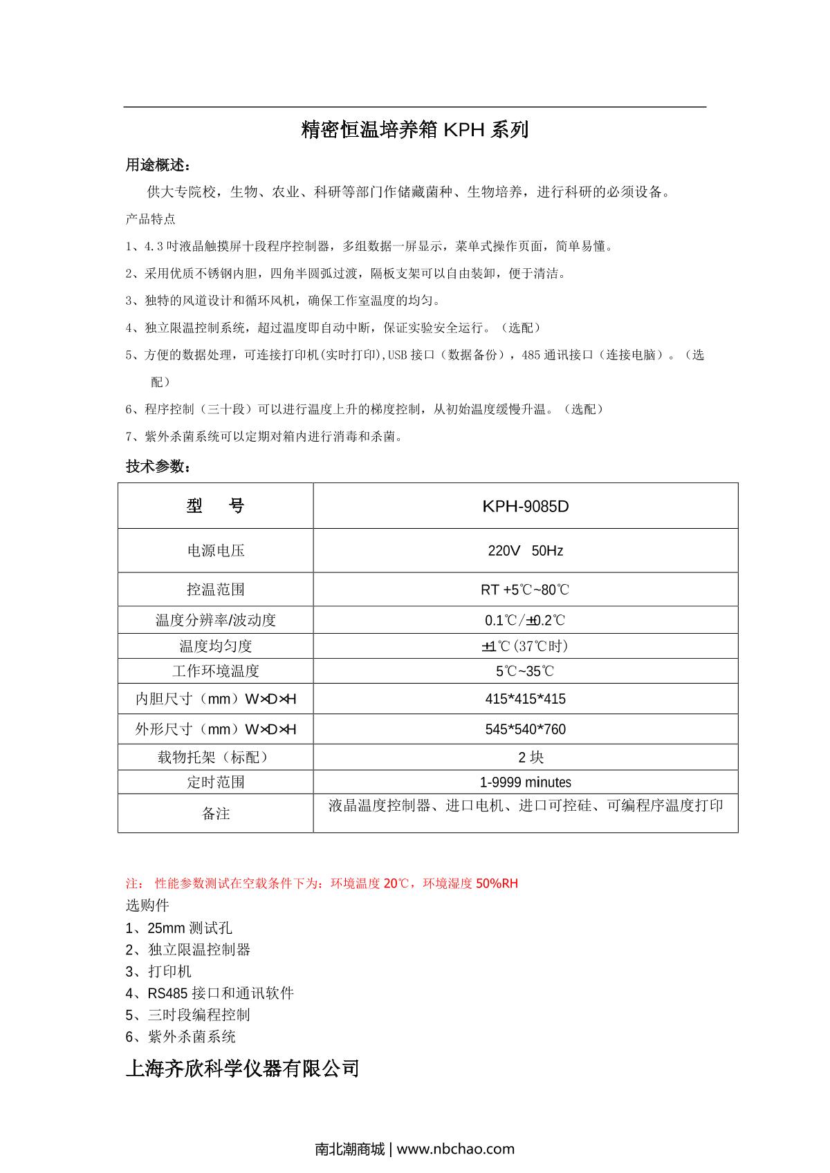 Keelrein KPH-9085D Precision Thermostatic Incubator (touch screen) brochure