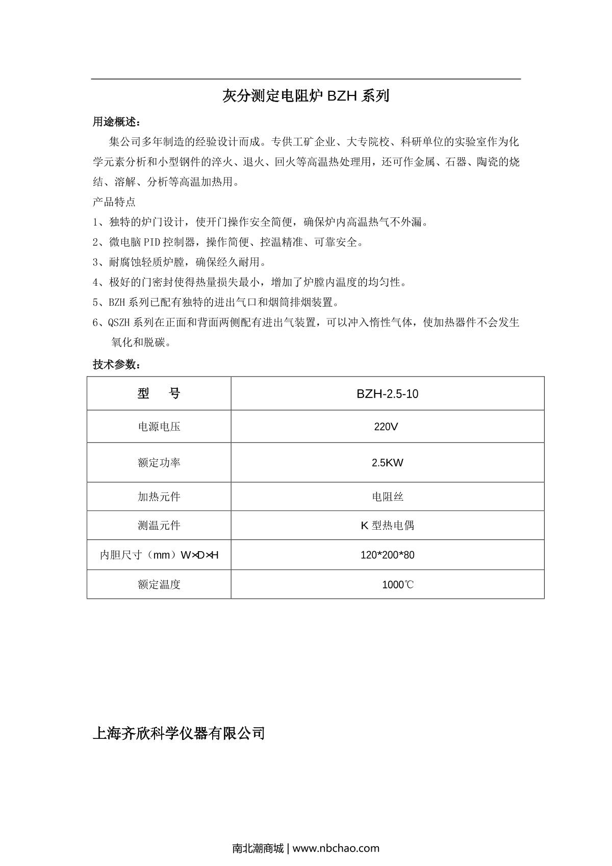 Keelrein BZH-2.5-10 Ash determination Resistance Furnace brochure