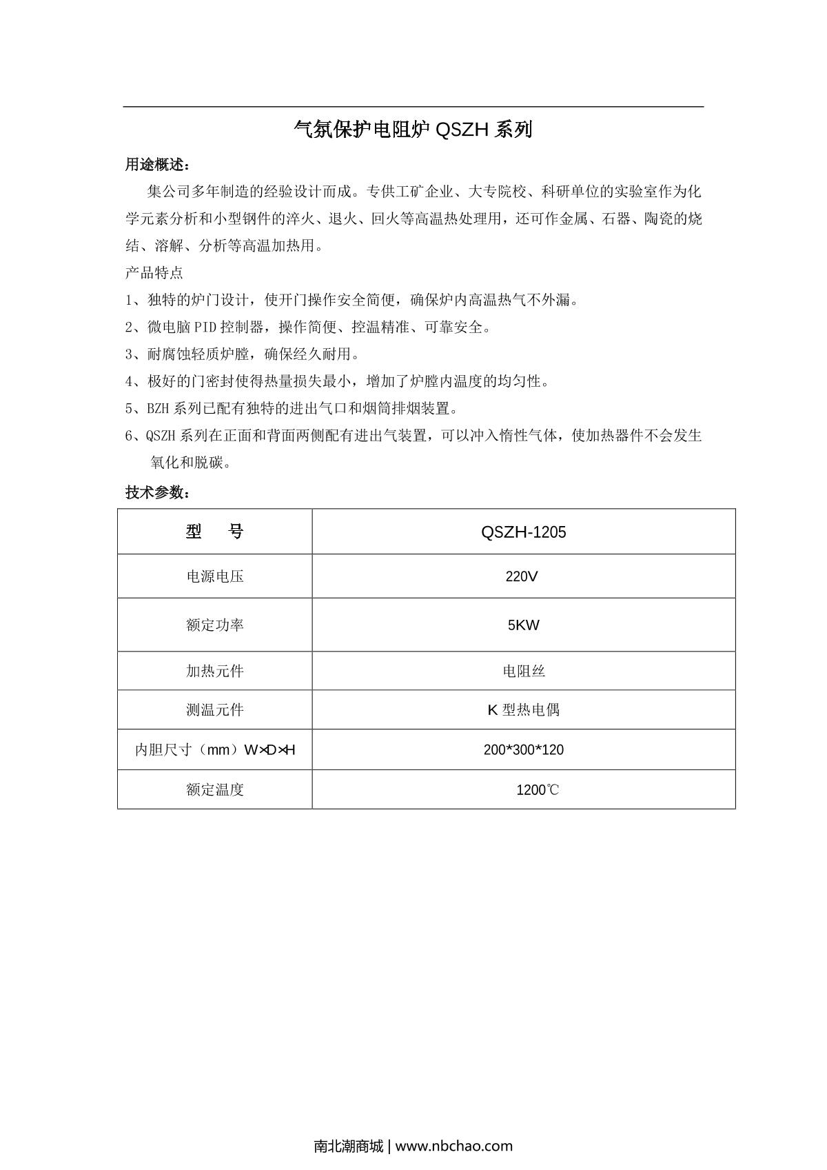 Keelrein QSZH-1205 Atmosphere protection Resistance Furnace brochure