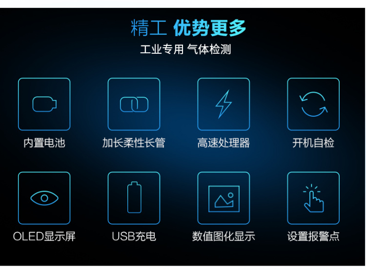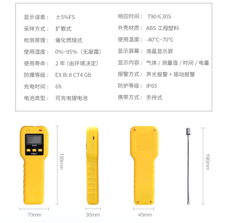 It is mainly used for leakage detection and overrun alarm of combustible gas in the surrounding air environment. It is suitable for all workers such as professional technicians and operators.