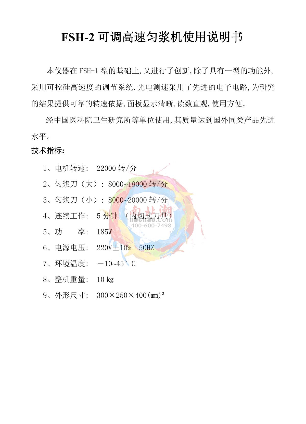 RONGHUA FSH-2 Adjustable high speed disperser brochure