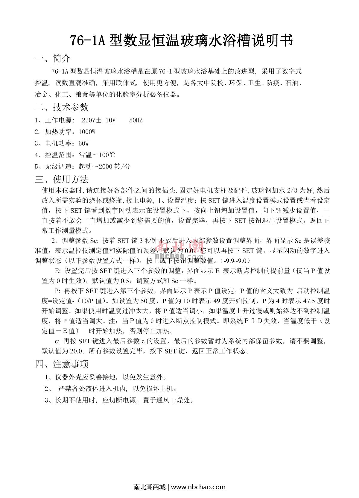 - 5RONGHUA 76-1A Glass thermostatic bath Manual