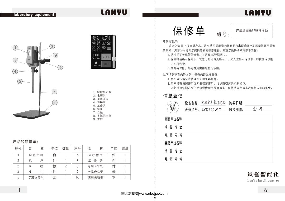 - 2LanYu LYD500W-T High Speed Dispersion Homogenizer Manual