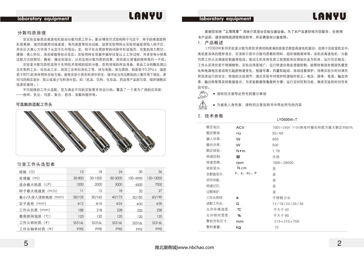 LanYu LYD500W-T High Speed Dispersion Homogenizer Manual,OI