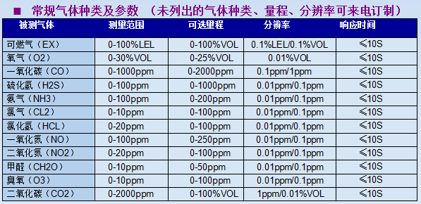 ◆ Liquid crystal dot matrix display technology, which can display gas types, gas units,Gas concentration values, measured maximums, local time, ambient temperature, etc