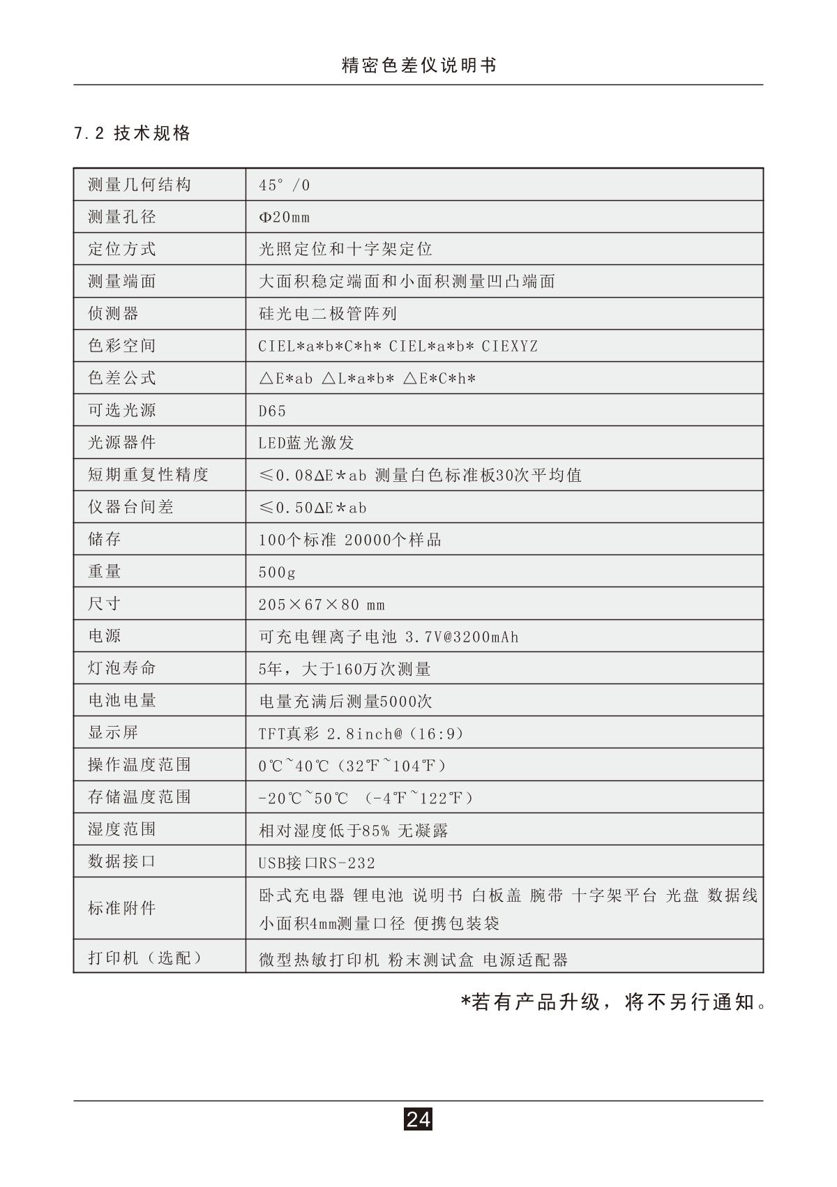 3NH ST50 Colorimeter φ 4mmD/8 (diffuse illumination, 8 ° direction reception) SCI/SCE measurement; exclude UV measurement according to CIE No.15, GB/T 3978, GB 2893, GB/T 18833, ISO7724-1, ASTM E1164, DIN5033 Teil7F40mmLight spectrum LED light source¥12800.0SE -