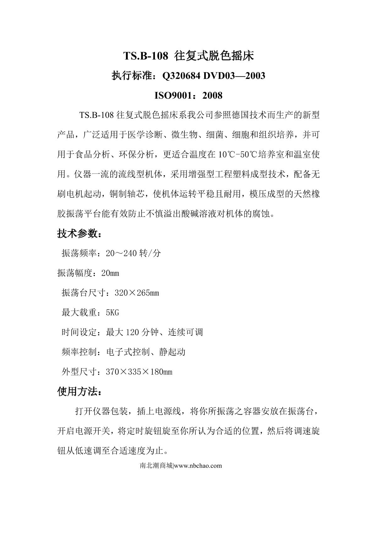 kylinbell TS.B-108 Reciprocating Decolorization Shaker Manual,OI