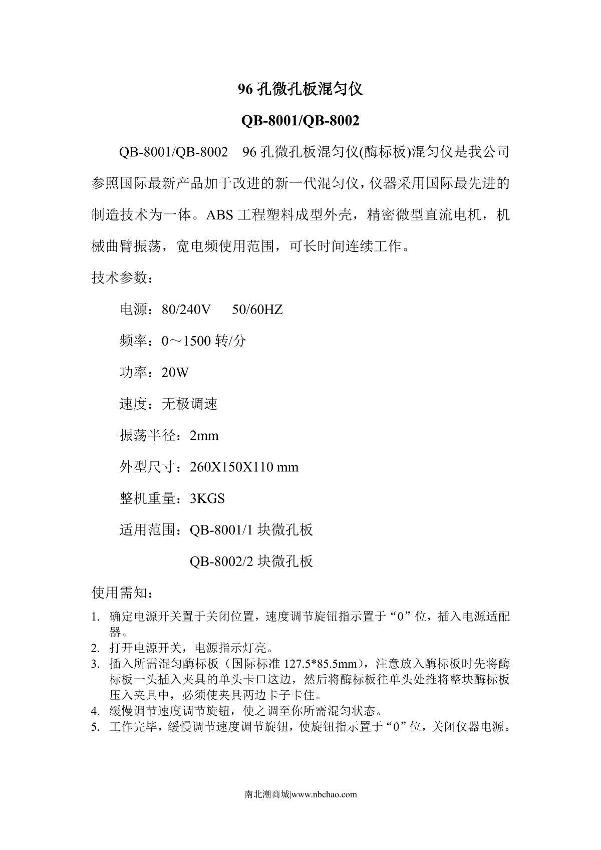 kylinbell QB-8001 96 Hole Microplate Mixer Manual,OI